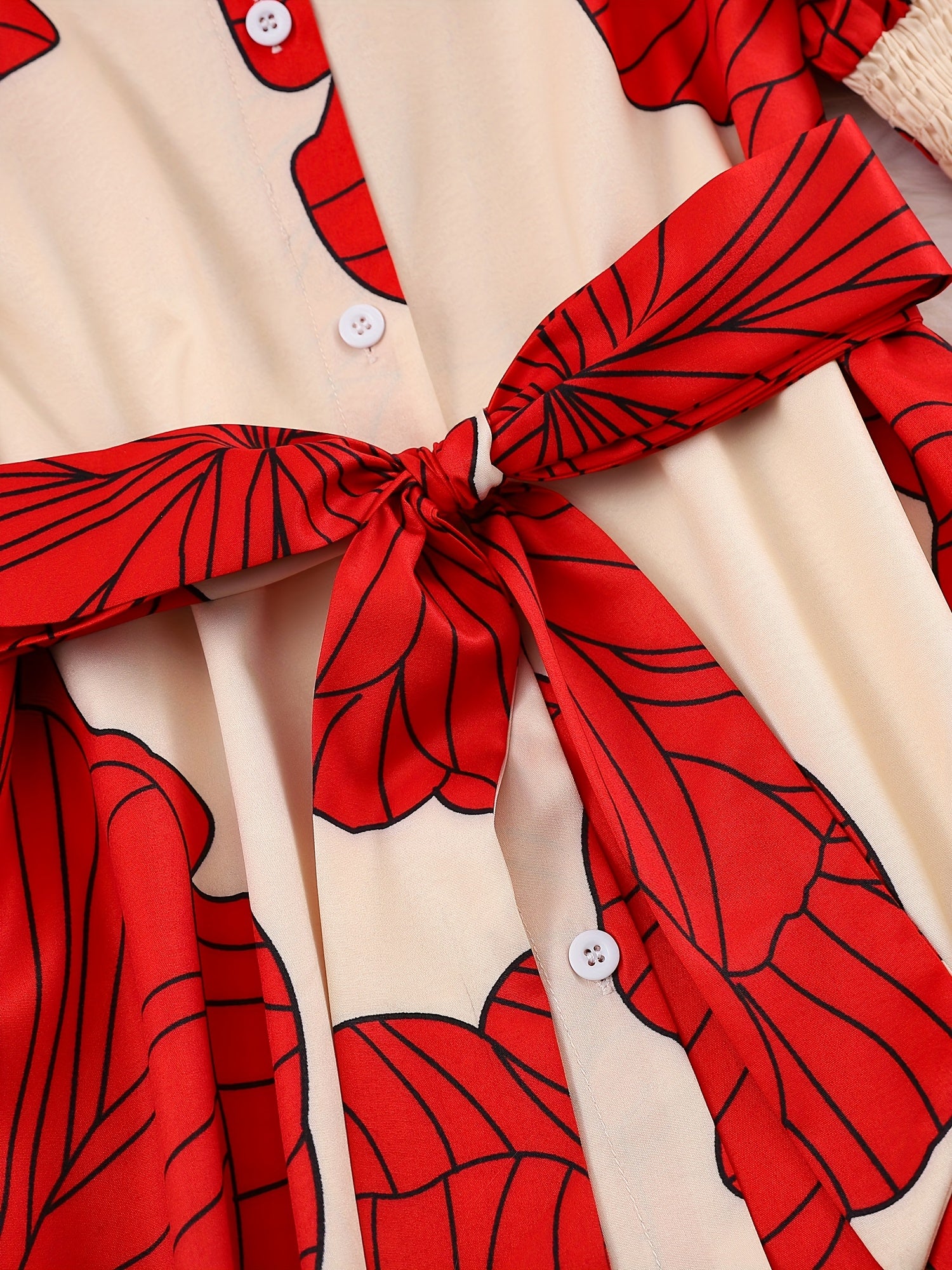 Floral Tie-Waist Maxi Shirt Dress – Elegant Long Sleeve A-Line Dress